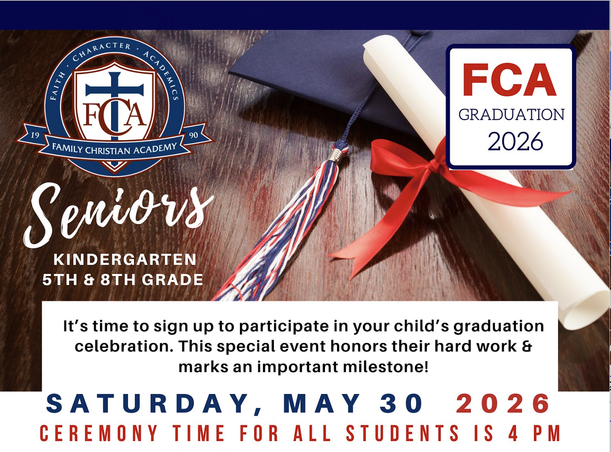 On Campus Enrollment Online Info & Enrollment HomeSchool Info & Enrollment 2026 GRADUATION INFO Discounts when you register for GRADUATION by April 1. FINAL DEADLINE - FRIDAY, MAY 1, 2026